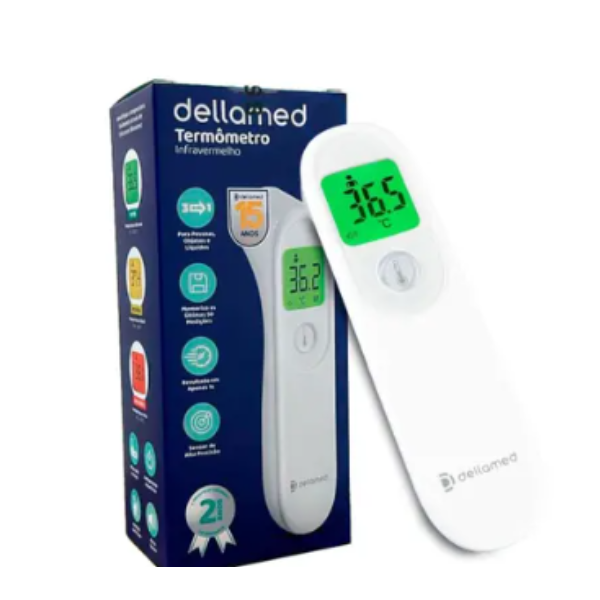 O Termômetro Infravermelho Dellamed permite medir a temperatura corporal sem contato, em poucos segundos, garantindo higiene, precisão e praticidade. Ideal para adultos, crianças, bebês e uso profissional.